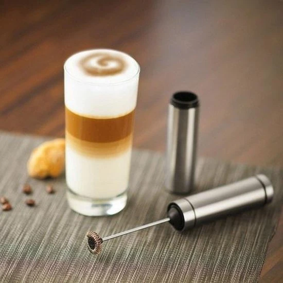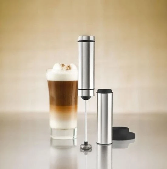 Deze elektrische melkopschuimer werkt op batterijen (bijgeleverd) en is ideaal om snel luchtig melkschuim te maken. Nu kunt u thuis ook genieten van een heerlijke latte macchiato, cappuccino of andere koffie. Naast melk opschuimen, is deze tool ook geschikt voor het maken van milkshakes, cocktails, lichte sauzen of het opschuimen van soep.