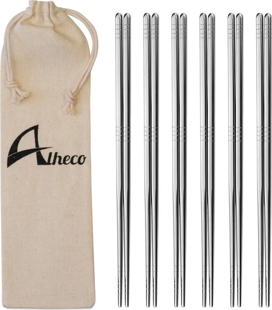 De eetkstokjes zijn vervaardigd uit hoogwaardig food grade RVS. Dit zorgt ervoor dat ze jaren meegaan en ze geen metalen bijsmaak met zich meebrengen. De set bestaan uit 6 paar, 12 stuks eetstokjes die na gebruik eenvoudig gereinigd kunnen worden in je vaatwasmachine.