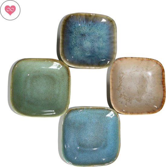 | Verpakkingsinhoud | Set, van, 4, tapas, amuseschaaltjes, Kleur, :, mix, groen-, en, blauwtinten, Porselein, Afmetingen, 8, 5, x, 8, 5, cm, Merk, Excellent, Houseware |