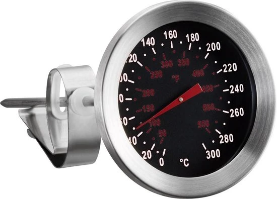Met deze keukenthermometer van Basic Culinair kan je het perfecte gerecht klaarmaken. Met het hoge meetbereik van 300 graden is het met deze thermometer allemaal mogelijk. Voorzien van een duidelijk afleesbaar display van ruim 5cm doorsnee en gemaakt van roestvrijstaal.