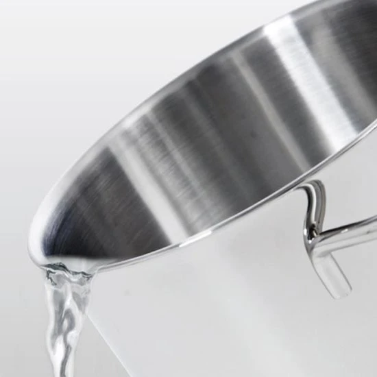 De body en bodem van de pan lopen vloeiend en afgerond in elkaar over. Omroeren van de inhoud en reiniging is hierdoor erg gemakkelijk. Het hoogglans gepolijst roestvrij edelstaal staat prachtig in elke keuken.