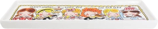 Serveer de lekkerste cakes of taartjes op deze nieuwe vrolijke en kleurrijke cakeschaal uit de Blond Amsterdam Even Bijkletsen lijn. De opvallende en kleurrijke illustraties kenmerken de ‘Even bijkletsen’ lijn van de twee vriendinnen uit Amsterdam: een servieslijn met een knipoog.