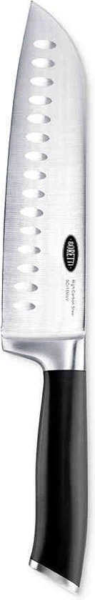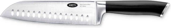 Boretti – Santoku mes – Santokumes – Mes uit de Aziatische keuken met breed lemmet, inkepingen en scherpe rechte snijkant – De alleskunner van de Aziatische keuken kun je voor vrijwel alles inzetten: voor het bereiden van vlees, vis en ook groenten