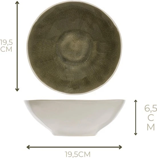 Het bijzondere aan deze aardewerken Spirit serviesset van Cosy&Trendy is dat de binnenzijde van elk serviesstuk haar eigen identiteit heeft: Met een craquelé achtige afwerking in combinatie met een prachtige donkere groene kleur geeft dit het tafelgoed een chique stijl.