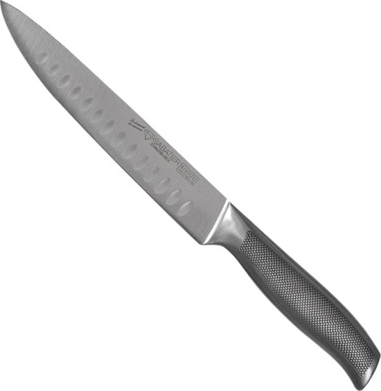 Vleesmes uit de Diamant Sabatier Riyouri serie. Door het flexibele en spitse lemmet van 20 cm gaat het gelijkmatig en precies snijden van alle soorten vlees perfect. Met antikleef kuiltjes.