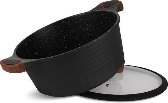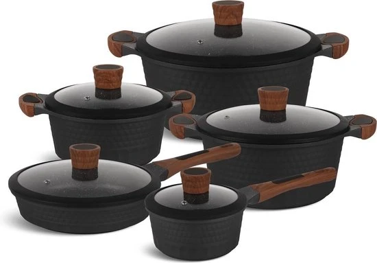 Deze prachtige pannenset van Edënbërg wordt geproduceerd onder de strengste Duitse normen en met het beste aluminium. De bodem is bedekt met maar liefst 3 lagen marmer met een mooie zwarte binnenkant die niet verkleurd. Dankzij de dikke bodem zijn de pannen zeer duurzaam en wordt het eten gelijkmatig verwarmd.