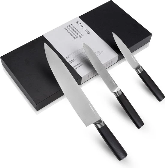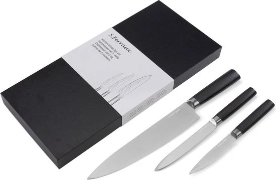 Een professioneel messenset is essentieel bij het bereiden van een heerlijke maaltijd voor zowel de hobbykok als een professionele kok. Kies daarom voor de vlijmscherpe messenest van Ferraux. De messen zijn gesmeed uit één stuk, liggen fijn in de hand en hebben een ergonomische grip. Omdat de messen gemaakt zijn van Duits staal en een hardheid van 58-60 HR hebben is dit de ideale messenset. Kortom de ideale startersset!