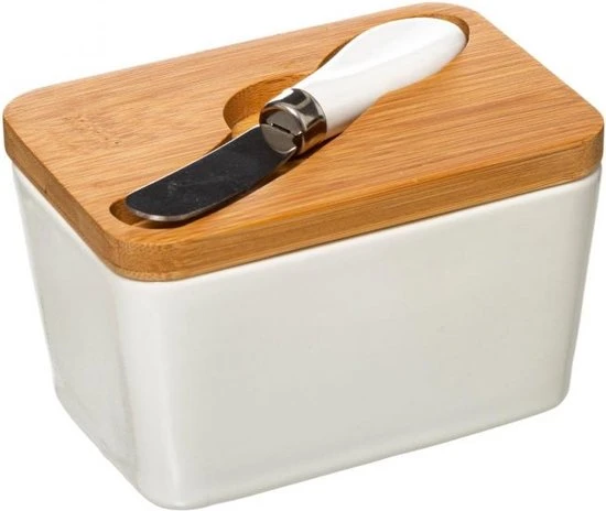 Onder de mooie gevormde deksel met knop blijft de boter zacht en eenvoudig smeerbaar. Het maakt niet uit of je de botevloot in de koelkast of het aanrecht bewaard.