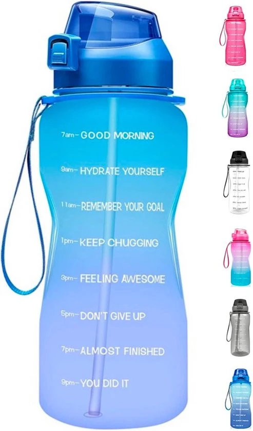 Wil jij ook gehydrateerd en gezond bezig blijven maar vind je het moeilijk om dit op peil te houden? Dan ben ik ideale fles voor jou! Met de motivatie waterfles blijf je gemotiveerd om te drinken en kan je precies bijhouden op welk tijdstip, je welk niveau bereikt moet hebben. De fles bevat een capaciteit van 2 liter, waardoor jij genoeg water binnenkrijgt voor de hele dag. Deze flessen maken het voor jou een stuk makkelijker om jouw dagelijkse hoeveelheid vocht binnen te krijgen. Hierdoor zal je eveneens meer energie hebben gedurende de dag. Door de unieke look van de fles zijn wij ook uiterst geschikt om mee te nemen naar de fitness, werk of andere gelegenheden.