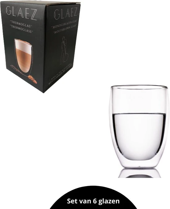 - Dubbelwandige glazen zijn van gehard glas gemaakt; ook wel borosilicaatglas genoemd.