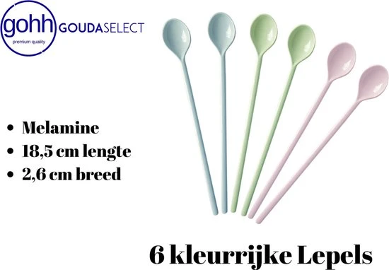 Elke keuken, groot of klein, moet worden uitgerust met een set van deze Lange Latte Lepels van Gouda Select! Met een lichtgewicht ontwerp en een lengte van 18,5 CM, zullen deze cocktaillepels de moeite nemen om te roeren met lattines, smoothies, fruitcocktails, babyvoeding, ijscafé, je milkshake, woestijn, enz. Deze decoratieve lepels met lange steel zijn gemaakt van een melaminemateriaal van topkwaliteit dat BPA-VRIJ, AFWASMACHINE-VEILIG & amp; EXTREEM DUURZAAM. Omdat ze temperaturen van een kille -4 tot 230+ graden Fahrenheit (-20 tot 110+ Celsius) kunnen weerstaan, kunnen deze lange lepels worden gebruikt op een breed scala van warme of koude dranken. U ontvangt 1 doos van 6 lange lepels (2 blauw, 2 groen en 2 roze) We raden je aan om een paar in de keuken te houden, een paar mee naar kantoor te nemen of misschien zelfs eentje in de lunchbox van je kind te pakken als dat nodig is. De mogelijkheden zijn vrijwel eindeloos met deze unieke lange roerlepels! Waar wacht je nog op? Het is tijd om een set van deze retro vintage melamine lepels toe te voegen aan uw verzameling keukenbenodigdheden. Klik op ‘Toevoegen aan winkelwagen’ om je eigen 6-delige lange lepel te bestellen bij Gouda Select vandaag!