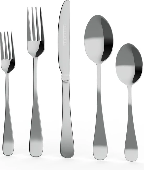 Dankzij de hoogwaardige afwerking en materialen is de complete bestekset geschikt voor de vaatwasser. Het type staal van de Grandlux Bestekset is 18/0. Wij raden aan om om het bestek direct af te drogen met een zachte doek.