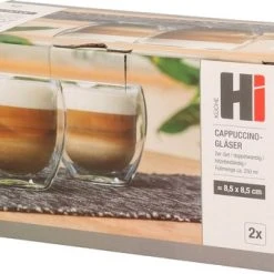Set van 2x stuks dubbelwandige koffieglazen/theeglazen 250 ml. Dubbelwandige glazen voelen aan de buitenkant koud aan, houdt koude dranken koel en warme dranken langer warm.