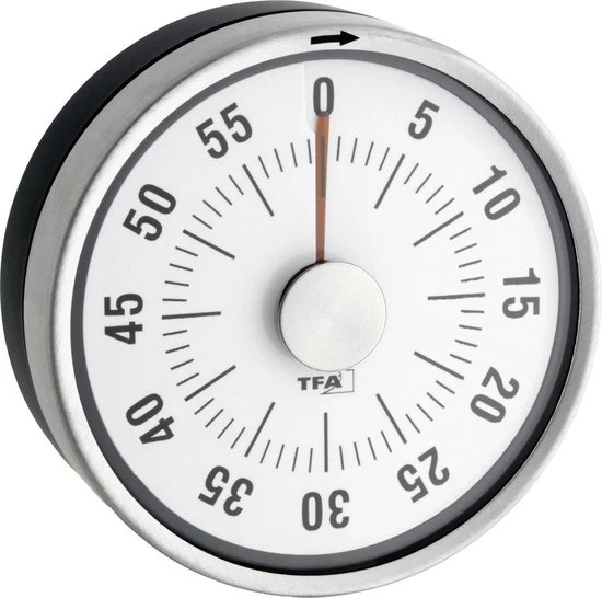 Deze mechanische kookwekker van TFA krijgt een handig rood vlak, als je de tijd instelt. Hierdoor kun je ook gemakkelijk van een afstandje zien of de tijd al bijna voorbij is. Als de tijd voorbij is, is het rode vlak verdwenen.Je draait de kookwekker op, dus het batterijtje kan nooit leeg zijn. Aan de achterkant bevindt zich een magneet, hierdoor kun je de kookwekker ook op de afzuigkap of koelkast plakken als je dat handig vindt.