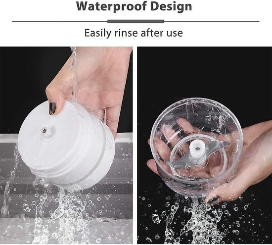 USB opladen interface met waterdicht ontwerp, kun je gemakkelijk de blender met een nat doekje reinigen zonder zorgen. Met het meegeleverd USB-oplader kun je de blender overal meenemen en opladen.