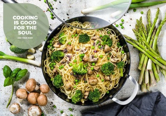 Deze roestvrij stalen deksel zorgt ervoor dat jouw ingrediënten rustig door blijven stoven of sudderen. Dat wordt lekker, gezond en zorgeloos koken!