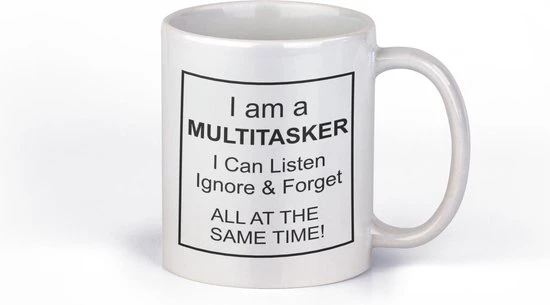 Witte mok met tekst aan beide zijden