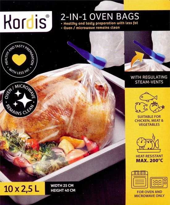 Deze braadzak is geschikt voor zowel de oven als de microwave : max. 200° C.