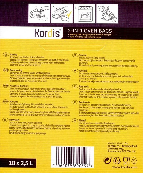 Let op voor vrijkomende hitte bij het openen ! Verpakt per 10 stuks in een zakje, in totaal 30 braadzakken.