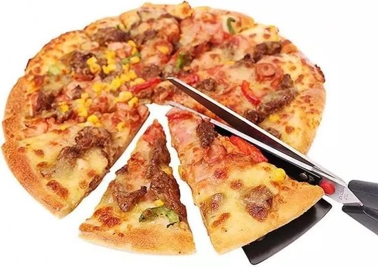 - Praktische 2-in-1 pizzaschaar met scherp roestvrijstalen lemmet, voor het snijden en serveren van pizza.