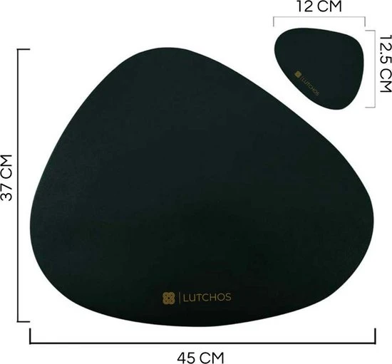 Met de placemats van LUTCHOS hoeft u nooit meer te twijfelen over genoeg sfeer aan uw eettafel. De LUTCHOS 12 delige placemats set bestaat uit 6 grote placemats waarop u uw borden en bestek kwijt kunt en 6 kleine placemats waarop u uw kop koffie of glas wijn kwijt kunt. De placemats zijn gemaakt van PU-leer dit is een milieuvriendelijk kunstmatig leer dat een glanzende lederlook geeft en bovendien waterafstotend en krasbestendig is.