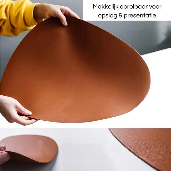 3. Oprolbaar, de placemats zijn gemakkelijk op te rollen om ze op te kunnen bergen. Bij het uitrollen zal het fijnloos van vorm veranderen om u tafel weer te kunnen beschermen.