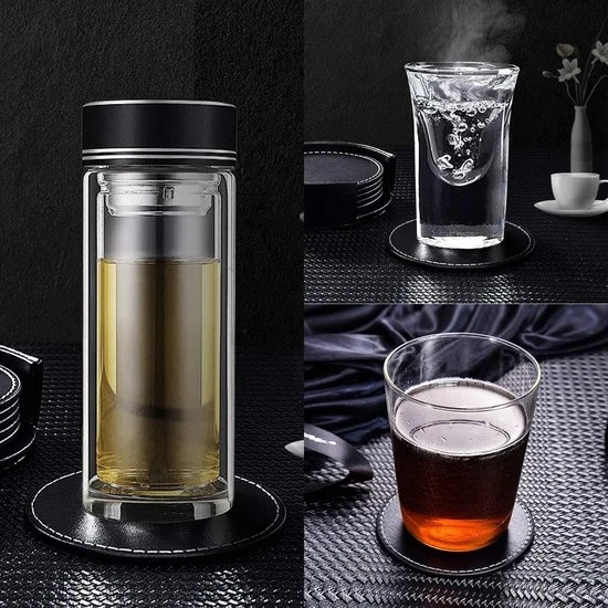 Zowel de houder als de onderzetters zijn gemaakt van hoogwaardig PU leer. Ze zijn beide daarom erg duurzaam, dit betekent dat je extra lang kan genieten van deze stijlvolle onderzetters. De onderzetters zijn daarnaast waterafstotend en hittebestendig. Dus het is helemaal geen probleem om je vochtige/bevroren beker of je hete kopje koffie/thee erop te zetten. En wees ook niet bang dat de onderzetters weg zullen glijden en je mooie glazen daardoor zullen vallen, want de onderzetters zijn anti-slip!