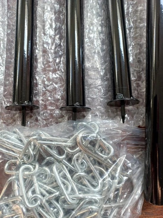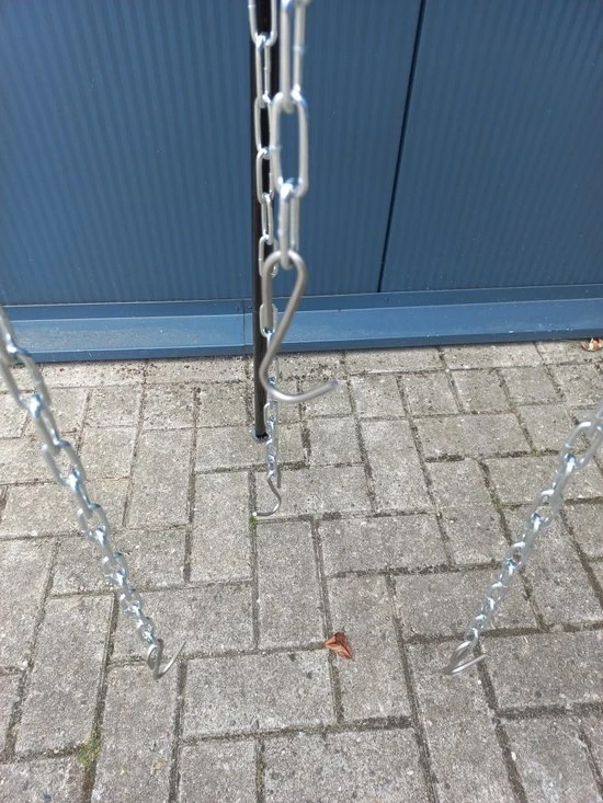 - De haken voor de roosterkettingen zitten op 90 cm vanaf de onderkant van de poot