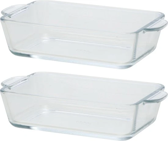 2x Rechthoekige glazen mini ovenschaal 500 ml 20 x 11 x 5 cm. Handige glazen mini ovenschaal/braadslede voor het koken, bewaren of opnieuw verwarmen in een handomdraai met dit praktische ovenschaaltje. Handige schaal voor het maken van diverse ovengerechten zoals een quiche, ovenschotel, lasagne of zoete baksels zoals taart, baklava of brownies. Aantal ovenschalen: 2x. Formaat: 19,6 x 11,3 x 4,5 cm. Inhoud: 500 ml. Materiaal: Borosilicaat glas. Hittebestendig tot 500 graden Celcius. Geschikt voor in de vriezer: Ja, tot -50 graden Celcius, indien u het voedsel goed afdekt. Er zit geen deksel bij inbegrepen. Vaatwasbestendig: Ja.