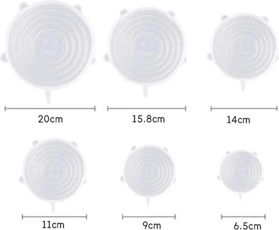 De siliconen deksels passen op alle soorten vormen: ovaal, rechthoek, rond, of vierkant en zijn de perfecte sluiting voor vershoudbakjes. De siliconen zijn flexibel en kunt u uitrekken tot bijna 40% van de oorspronkelijke grootte.