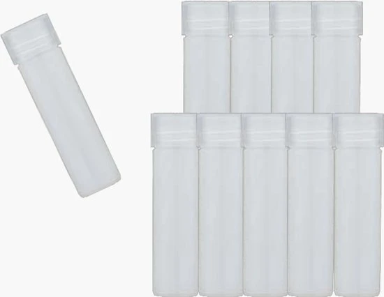 Deze 5ml buisjes worden geleverd met een vloeistofdichte schroefdop. Dit product is gemaakt van een keihard kunststof genaamd Polypropeen. De buisjes kunnen gebruikt worden voor opslag en transport van vloeistoffen.