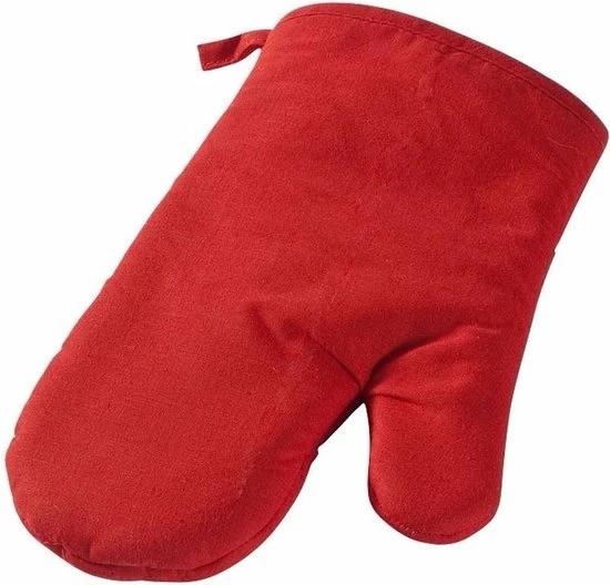 Rode ovenwant/ovenhandschoen keukentextiel. Hoogwaardige keukenhandschoen van zacht katoen met een gladde zijde, speciaal ontworpen voor bedrukkingen, en een doorgestikte zijde met ruitpatroon. De want heeft een ophanglusje bij de opening. Met deze rode ovenwant/ovenhandschoen beschermt u uw handen tegen branden aan de oven of een hete schaal. U kunt deze ovenhandschoenen elders laten bedrukken, of zelf decoreren met textielstiften. Een leuk cadeau voor bijvoorbeeld Moederdag of Vaderdag! Materiaal: 100% katoen. Afmeting handschoen: 18 x 28,5 cm, de handopening is 13 cm breed. Kleur: rood. Bakken en koken benodigdheden ovenhandschoentjes/ovenwantjes voor dames/heren/volwassenen. Keukentextiel keukenhandschoenen.