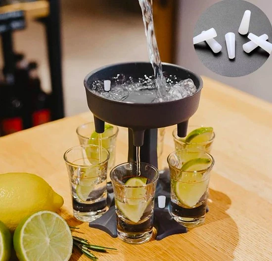 De shotfontein is idiaal om met wat vrienden/vriendinen gezellig even een aantal shotjes te drinken. Door de shot verdeler is er geen gemors en hoef je ook niet daarna de hele tafel schoon te maken. Je kan op deze manier ook 6 shotjes tegelijk meenemen. Bij de shotfontein zitten ook 6 shotglazen erbij.