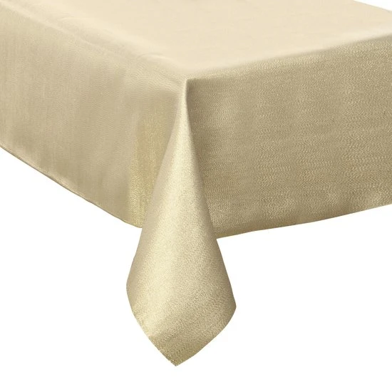 Tafelkleed/tafellaken goud van polyester formaat 140 x 240 cm. Tafeldecoratie tafelkleden. Kerst/kerstdiner tafelkleden.