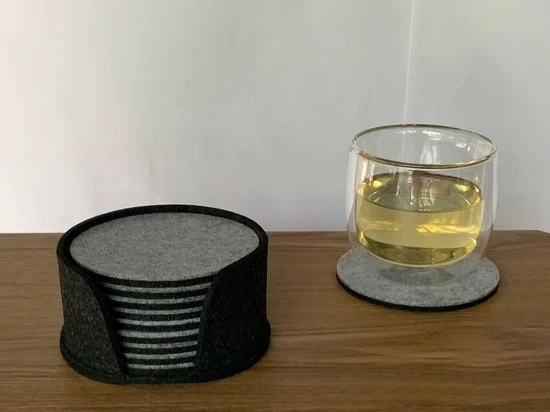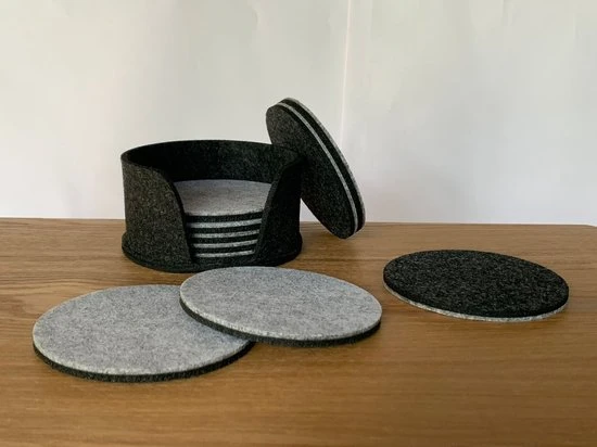 Voorkom kringen en vlekken op je tafel met deze hoge kwaliteit vilten onderzetters met houder.