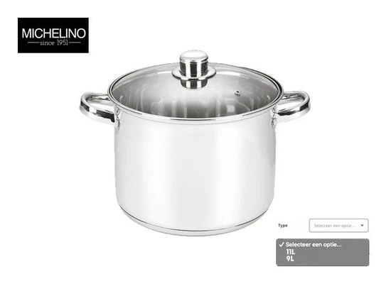 Een moderne kookpan/soeppan van het merk Michelino. Aan de zijkant van de soeppan zitten 2 handvatten zodat u de pan gemakkelijk kan optillen. Door het materiaal RVS is de pan gemakkelijk schoon te maken. De pan kan gereinigd worden in de vaatwasser is dus volledig vaatwasserbestendigd.