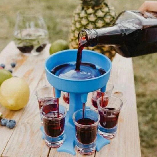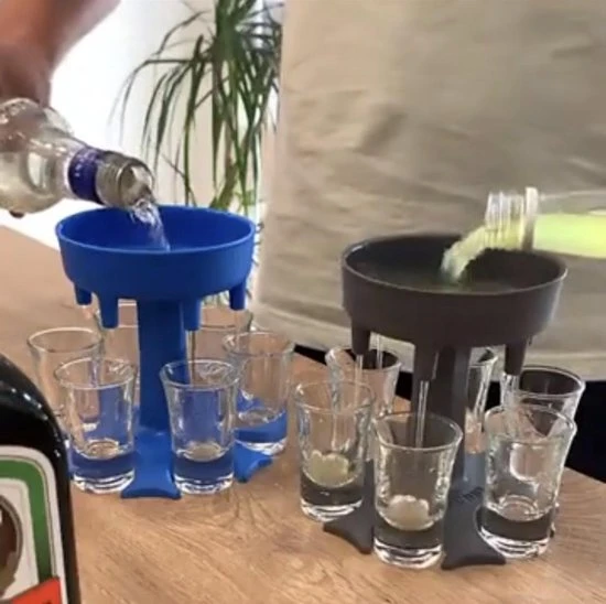 op een feestje steel jij de show met je shotjes verdeler nooit meer gezeur met shotjes die overlopen met drank en nooit meer gezeur met al die shotglaasjes vasthouden, met de shotjes verdeler kan je ze allemaal tegelijk vasthouden.