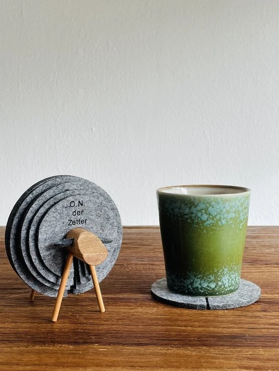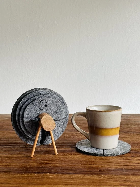 Deze stijlvol ontworpen vilten onderzetters zijn de perfecte toevoeging voor elke tafel in huis of werkplek vanwege de moderne uitstraling van de onderzetters en de warme uitstraling van de houten houder. Je kunt de onderzetters gebruiken voor elk moment van de dag, je kopje koffie of thee in de ochtend, wijnglas of bierglas in de avond. Al je glazen zullen ongetwijfeld op de onderzetters passen en jouw tafel zal daarmee beschermd worden tegen krassen, kringen, vlekken of brandplekken.
