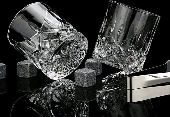 Olvy Whiskey Set Met 2 Whiskey Glazen En 8 Whiskey Stones – Incl. Opbergzakje, Onderzetters En Tang – Cadeauset – Luxe Whisky Set – Whiskey Glazen – Gift Set