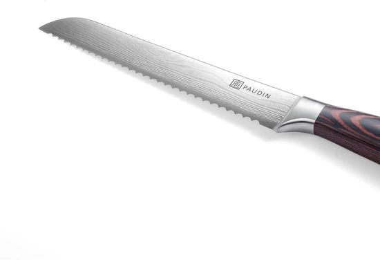 Het mooie van het PAUDIN broodmes is dat het voorzien is van een esthetisch ingelaserd Damascus patroon. Dit patroon is op een magnetische messenhouder een blikvanger van de hoogste categorie in uw keuken. Dit maakt het bezitten van alle messen uit de hele Universal N-serie een mooi en streefbaar vooruitzicht waarbij u zult merken dat dit broodmes van elke zondagochtend een feestje maakt.