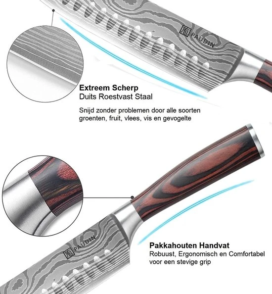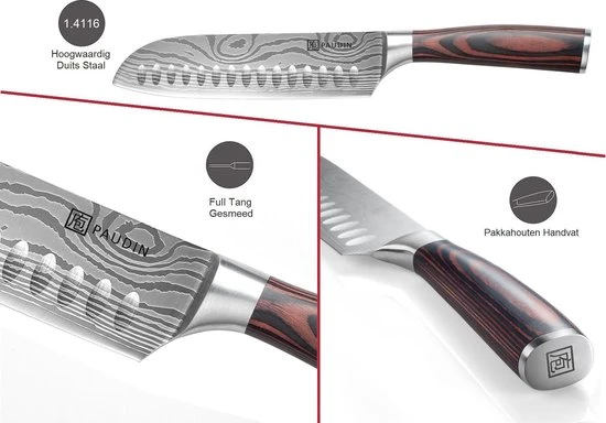 Een goed Santoku mes koopt u niet voor even, maar moet jaren meegaan en in alle situaties soelaas bieden. Paudin staat voor kwaliteit en duurzaamheid, louter de beste staalsoorten worden gebruikt en de afwerking is altijd van het hoogste niveau. Een Paudin mes is vlijmscherp, elegant en heeft een veilige, ergonomische en comfortabele grip. Dit alles zorgt ervoor dat dit Santoku mes zich binnen zijn segment kan scharen onder de sterkste en beste messen in de markt! Kortom, PAUDIN keukenmessen zijn de messen waar u naar zoekt!