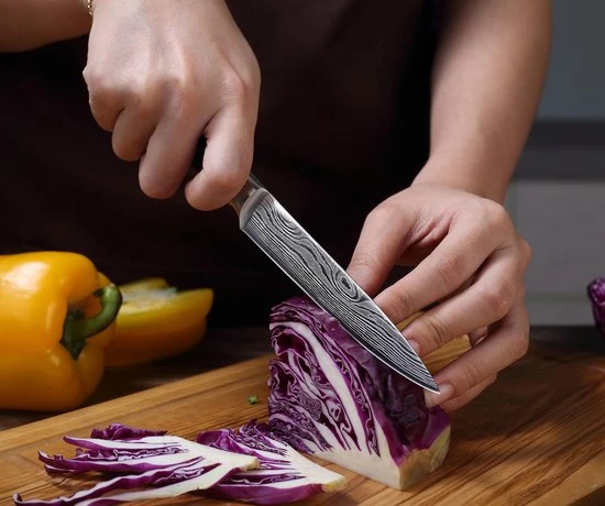 - Allround universeel groentemes met esthetisch ingelaserd Damascus patroon