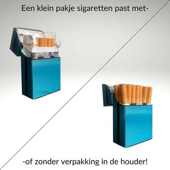 Dit doosje heeft ruimte voor 20 sigaretten. Het doosje is zo ontworpen dat het de originele verpakking van 20 sigaretten automatisch in het doosje vastklikt, dit maakt het gebruik van het doosje eenvoudig en efficiënt. Ook passen losse sigaretten goed in het doosje, los passen er ook 20 sigaretten in.