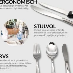 Sola Bestekset Montreux – Modern – 12 Persoons – 64 Delig – Zilverwit Edelstaal 18/10 – RVS – Zilver