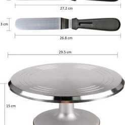 LivingHub Luxe RVS Draaiplateau Set – Taart Bakken Accessoires – Taart Decoratie – Taartversiering – Cadeautip
