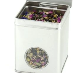 Theeblik Losse Thee – Zilver – Met Venster – De Gouden Kat – 75/100 Gram – Theedoos