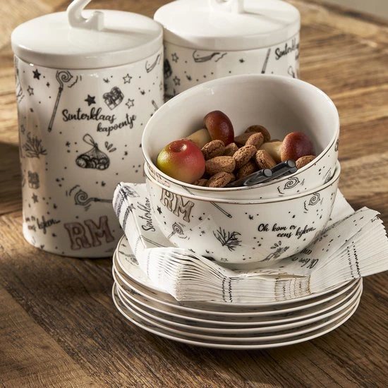Dit schaaltje komt uit de Sinterklaas serie van Riviera Maison en is geschikt voor het decoreren van uw Sinterklaas diner of ontbijttafel. Deze serie omvat ook een bijpassende mok, voorraadpot en twee ontbijt/ gebaksbordjes. Het witte ontbijt- of serveerschaaltje is bedrukt met Sinterklaas-symbolen. Bovendien is dit bakje perfect voor het serveren van pepernoten. Wasvoorschriften: Handwas