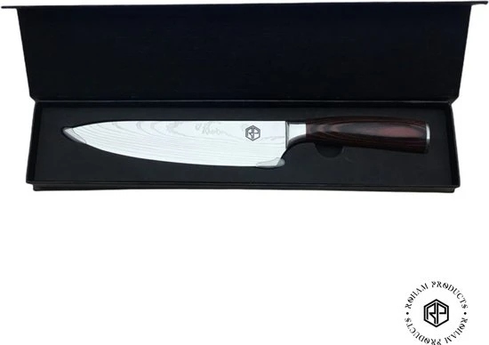 Het lemmet van het RP koksmes is gemaakt in Japanse stijl (slijphoek) en is van RVS; het lemmet heeft een lengte van 20CM. Het handvat is gemaakt van Pakkahout en is 13CM lang. Het is een lichtgewicht mes (180 gram), waardoor het comfortabel in de hand ligt. Het is het ideale allround mes voor iedere keukenliefhebber.