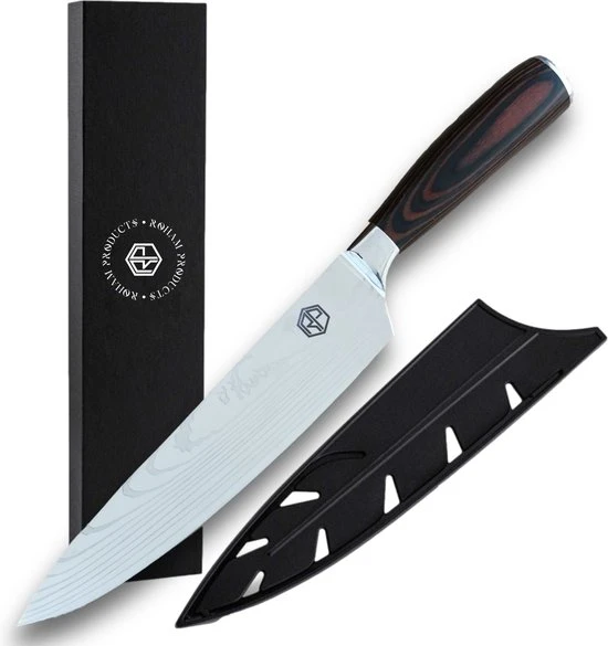 Het RP koksmes wordt geleverd met een beschermhoes voor over het lemmet, hierdoor is het makkelijk en veilig op te bergen. Ook wordt het mes geleverd in een mooie geschenkdoos waardoor het RP koksmes ideaal is om cadeau te geven.