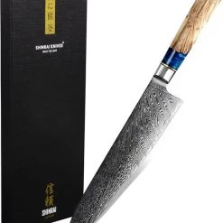 Het Epoxy Sapphire Damascus Koksmes van Shinrai Japan is een prachtige eyecatcher voor op je messenblok. Dit populaire mes is niet alleen prachtig om te zien maar ook voor alle snijtaken te gebruiken. Met dit prachtige Japanse koksmes is geen snijtaak onmogelijk. Deze allrounder is geschikt voor het snijden vlees, vis groente, fruit en kruiden